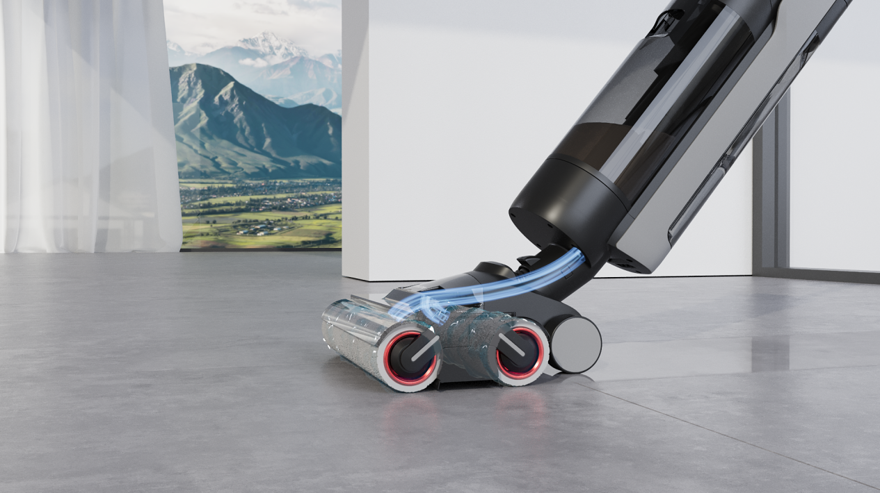 为提供更高效的清洁效果,追觅M13 Pro Ultra采用创新双滚刷设计:每个滚刷都配备独立电机,可以实现1000转/分钟高频擦地。区别于传统的单刷设计,双滚刷通过双向旋转,前刷吸走大小垃圾,后刷对前刷清洁过的区域进行二次清洁,同时把残留的水渍吸走,推动一次便可获得双倍清洁力。加上搭配全新32孔双水路活水喷淋系统以及双侧0贴边设计,追觅M13 Pro Ultra清洁体验更上一层。