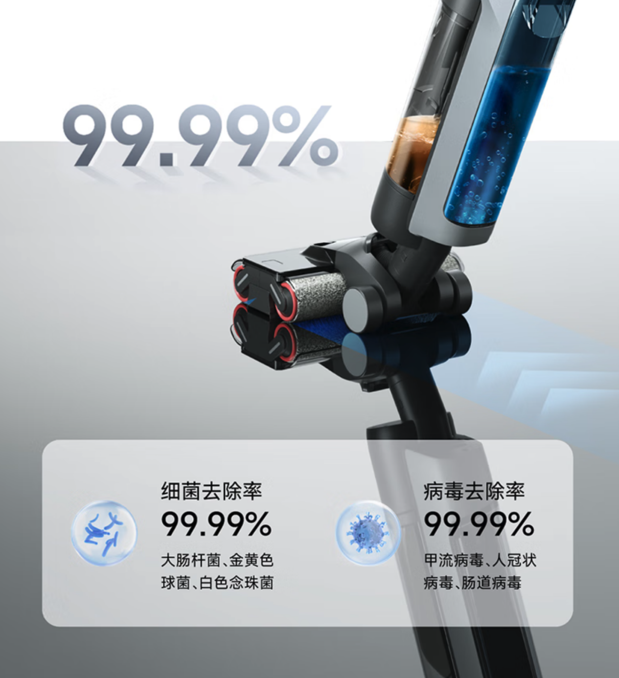在"全链路除菌"的保障下,追觅M13 Pro Ultra能有效消灭生活中常见细菌(大肠杆菌、金黄色球菌、白色念球菌)以及常见的病毒(甲流病毒、人冠状病毒、肠道病毒),除菌率高达99.99%,让家居环境更加洁净,无需担心细菌病毒残留。全链路除菌和防菌的设计,更能防止二次污染的发生,时刻保障健康的清洁环境。